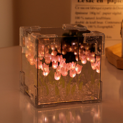 Crystal Decoration Creative Square Color Tulip Flower Sea Three-dimensional Night Light Uionen 1634